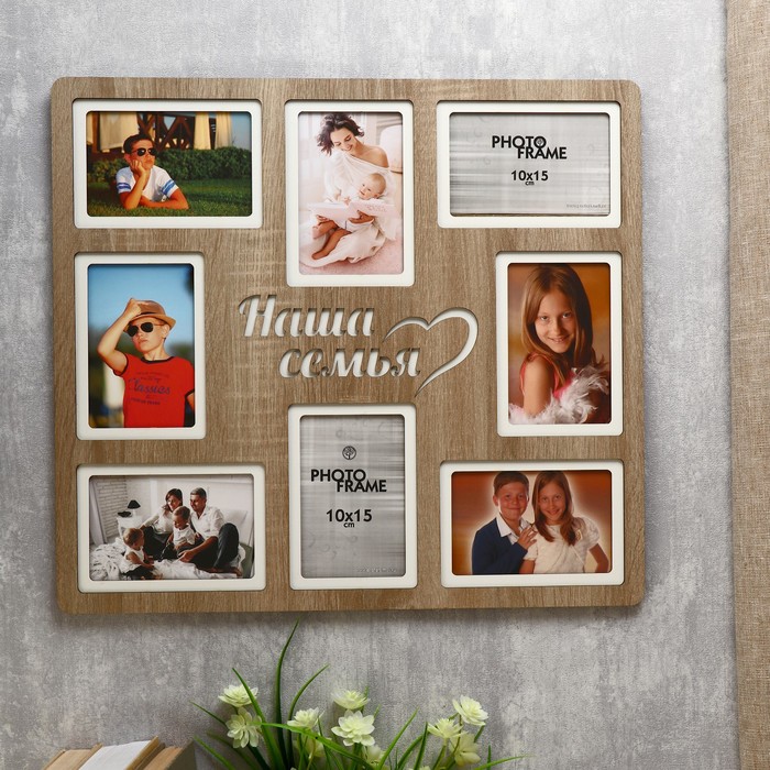 Фоторамка - коллаж на 8 фото 10×15 см «Наша семья», (пластиковый экран), светлая