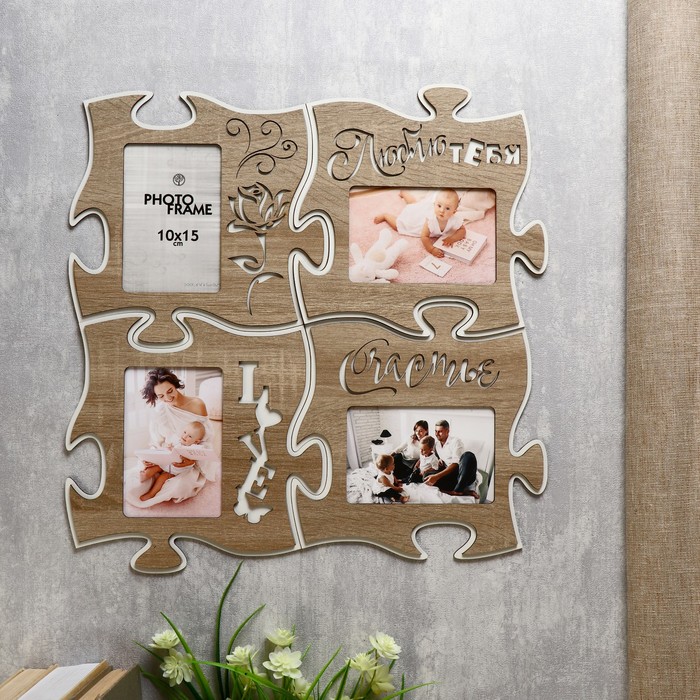 Фоторамка - коллаж пазл из 4 фрагментов 25×25 см «Люблю тебя», ХДФ