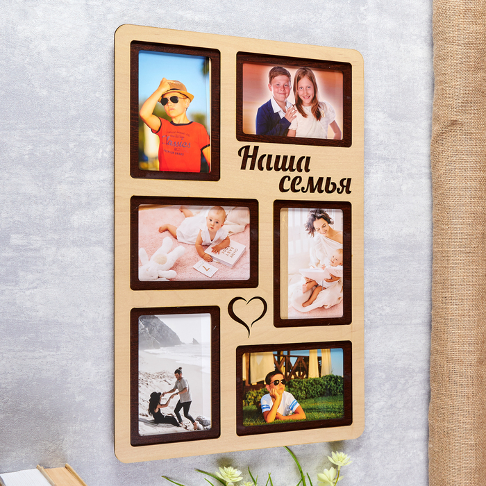 Фоторамка - коллаж на 6 фото 10×15 см «Наша семья», бежевый, 33×51 см