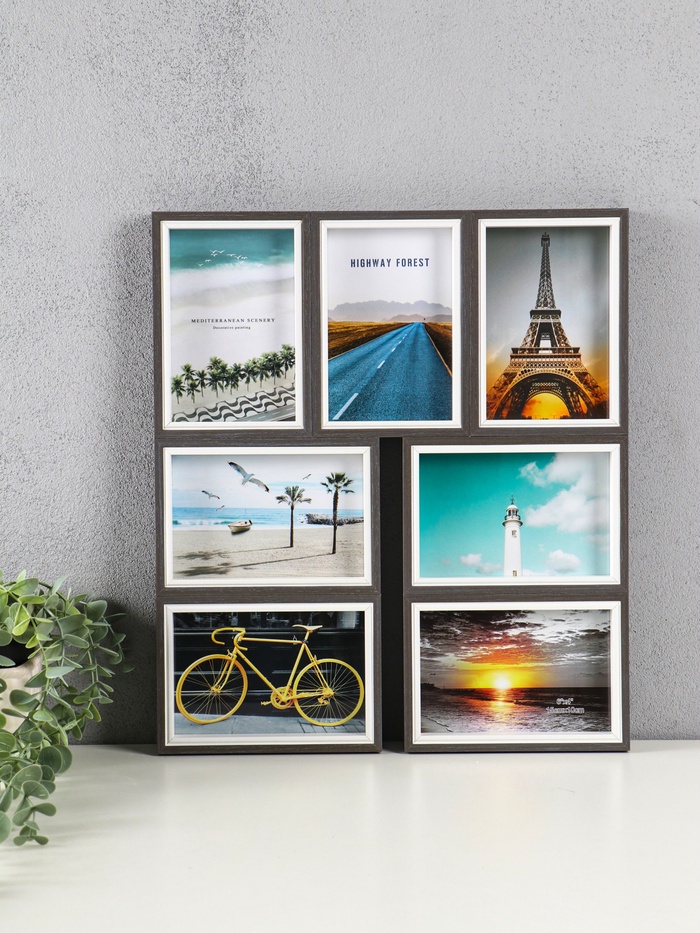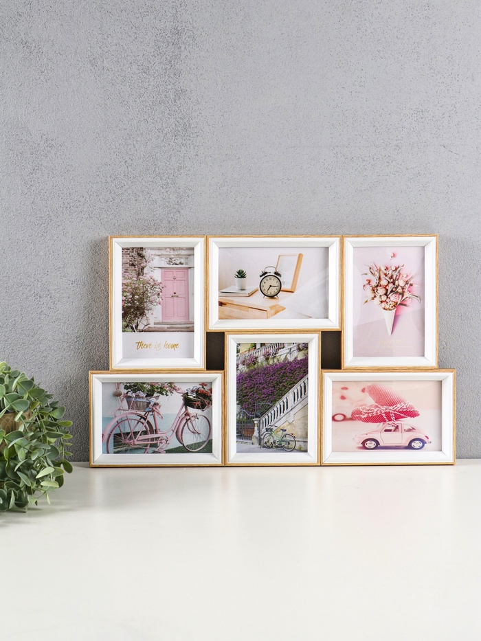 Фоторамка - коллаж на 6 фото 10×15 см «Двухцветная», пластик, 29.5×46.5×2 см