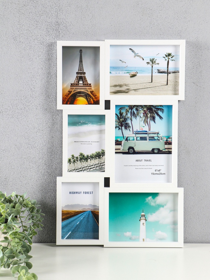Фоторамка - коллаж на 6 фото 10×15 см, 13×18 см, 15×20 см «Воспоминания», МДФ, стекло, белая, 51×31.5×2.2 см