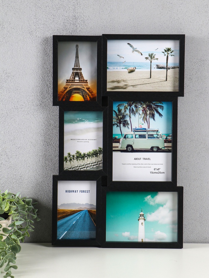 Фоторамка - коллаж на 6 фото 10×15 см, 13×18 см, 15×20 см «Воспоминания», МДФ, стекло, чёрная, 51×31.5×2.2 см