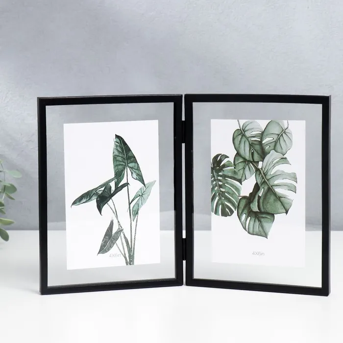 Фоторамка металл на 2 фото 10х15 см "Лофт. Строгие линии" чёрная 20х30,5х2,3 см