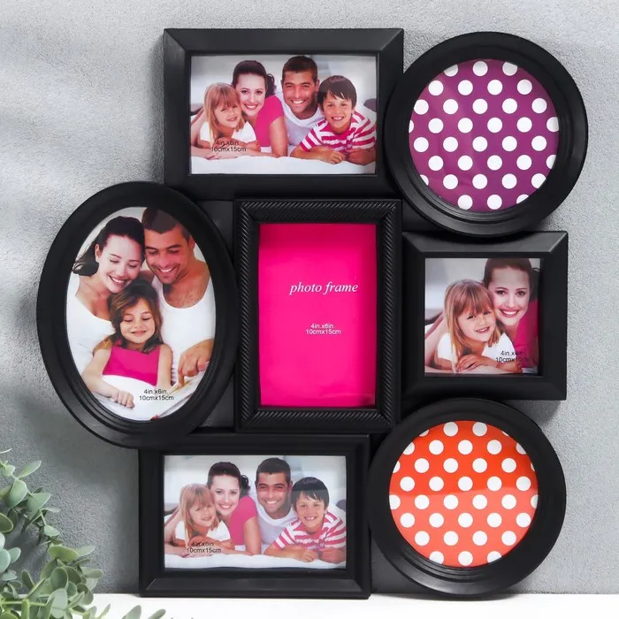 Мультирамка пластик на 7 фото, цв. чёрный (пластиковый экран)