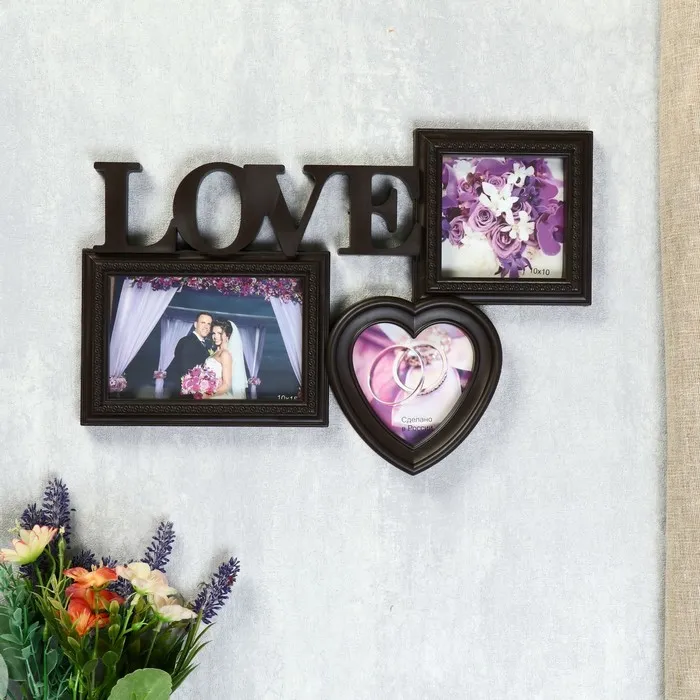 Фоторамка-Коллаж "Любовь" на 3 фото, венге (пластиковый экран)