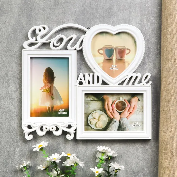 Фоторамка-коллаж на 3 фото 10×15, 13×13 см «Ты и Я», пластик, мультирамка, белая, 27×30×3 см