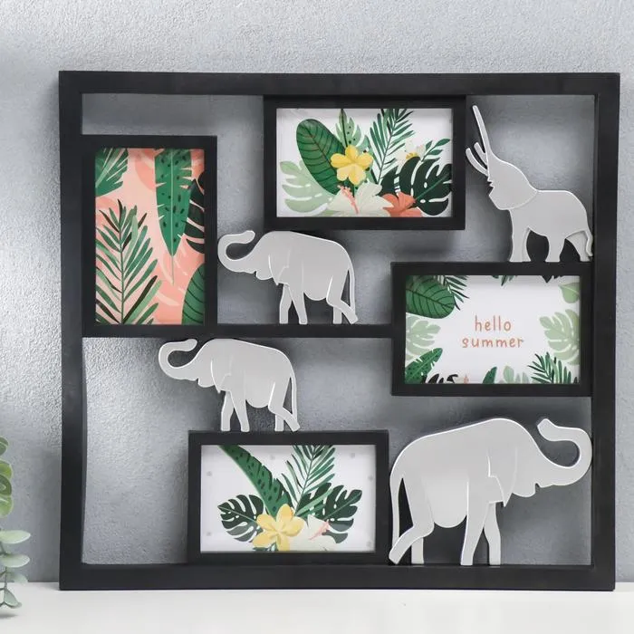 Фоторамка пластик на 4 фото 10х15 см "Четыре серебряных слона" чёрный 39х42 см