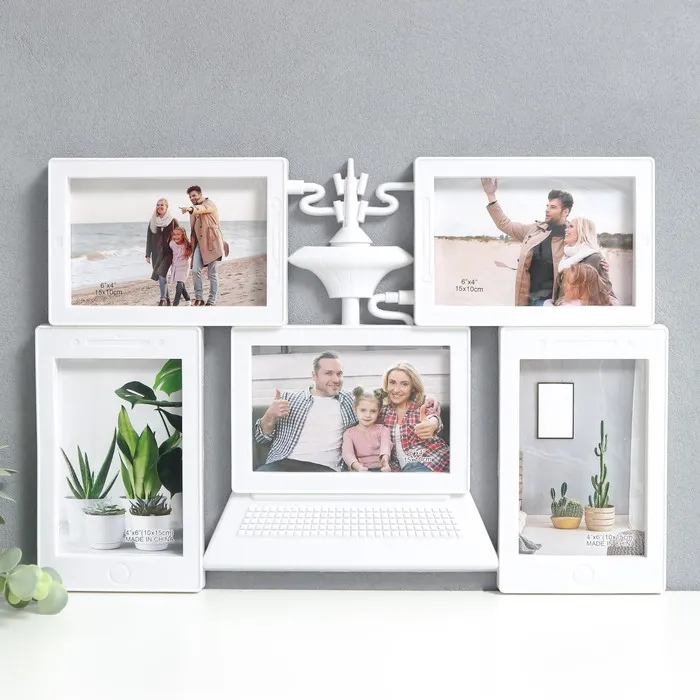 Фоторамка пластик на 5 фото 10х15 см "Ноутбук" белая 30,5х44,5 см