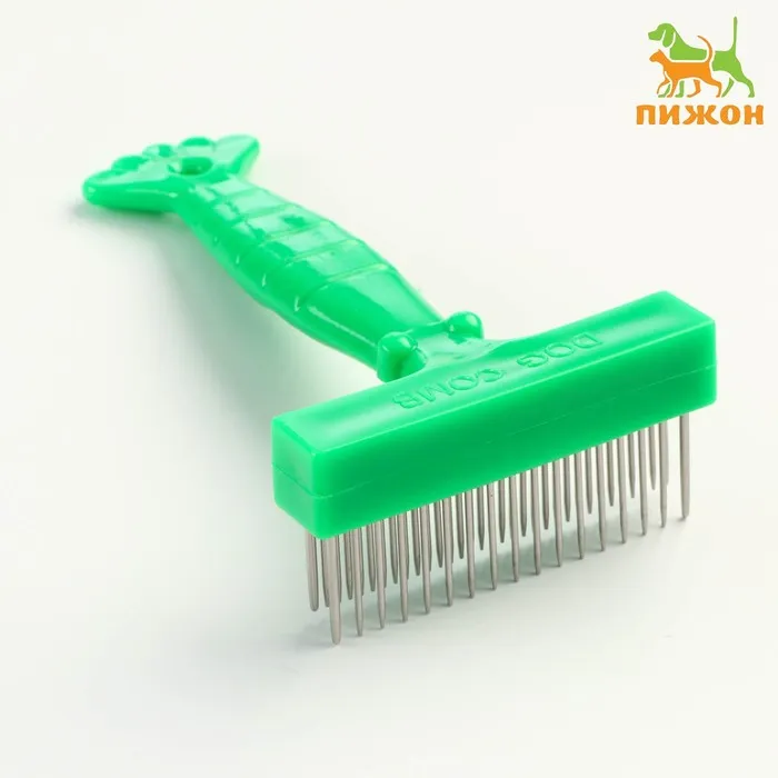 Расческа для шерсти 15,6 х 3,6 см, короткие зубья 1,7 см, розово-жёлтая
