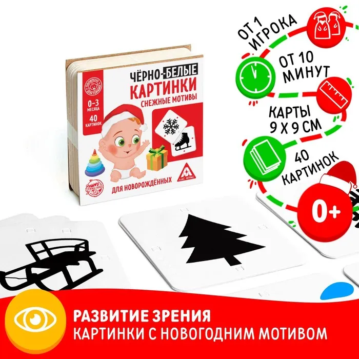 Картинки для новорожденных черно-белые «Снежные мотивы», 40 картинок, 0+