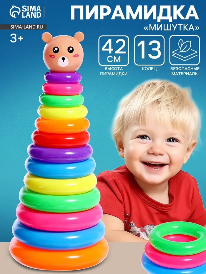 Детская развивающая пирамидка «Разные фигуры» 9.5×9.5×15.5 см