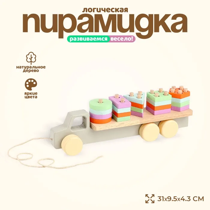 Пирамидка логическая «Грузовик», размер 4.3×31×9.5 см