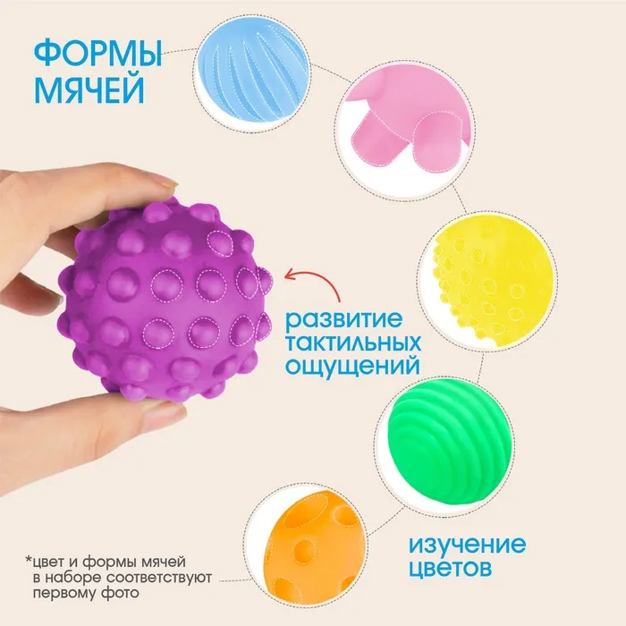 Развивающие тактильные мячики Крошка Я «В мешочке», с пищалкой, в наборе 6 шт, от 3 лет