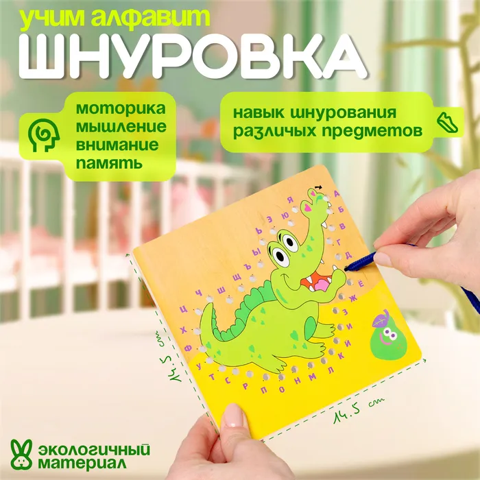 Шнуровка крокодил «Учим алфавит» 14.5×14.5×0.5 см
