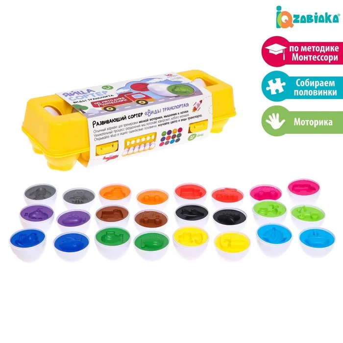 Сортер «Виды транспорта. Яйца», по методике Монтессори, 12 шт.