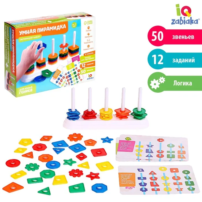 Обучающий набор «Умная пирамидка», звенья, задания, основа, по методике Монтессори