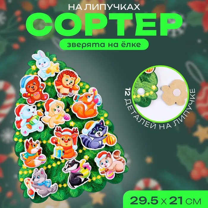 Сортер «Зверята на ёлке», на липучках