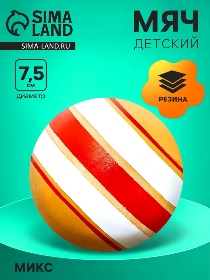 Мяч резиновый, диаметр 75 мм, цвета МИКС