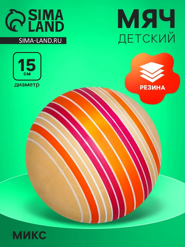 Мяч резиновый, диаметр 15 см, цвета МИКС