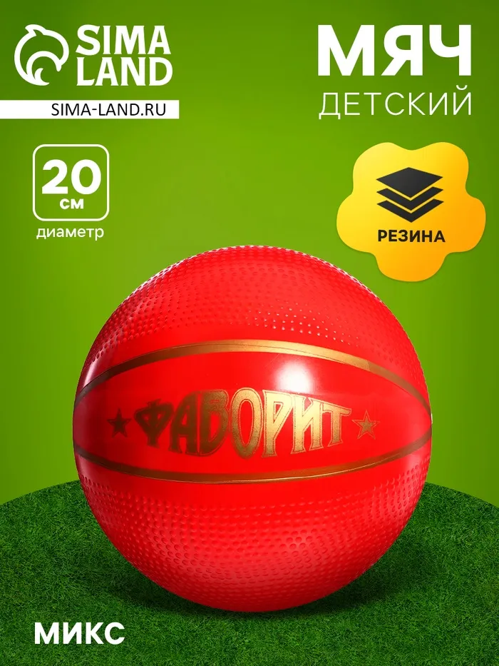 Мяч резиновый «Фаворит», диаметр — 20 см, МИКС
