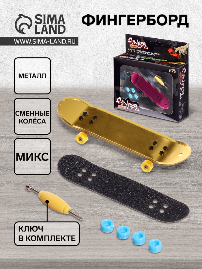 Фингерборд металлический «Золотой трюк», 2 комплекта колёс, ключ, цвет МИКС
