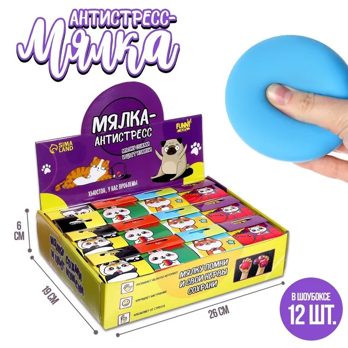 Антистресс сквиш мялка «Зверята», с пастой, цвета МИКС, в шоубоксе