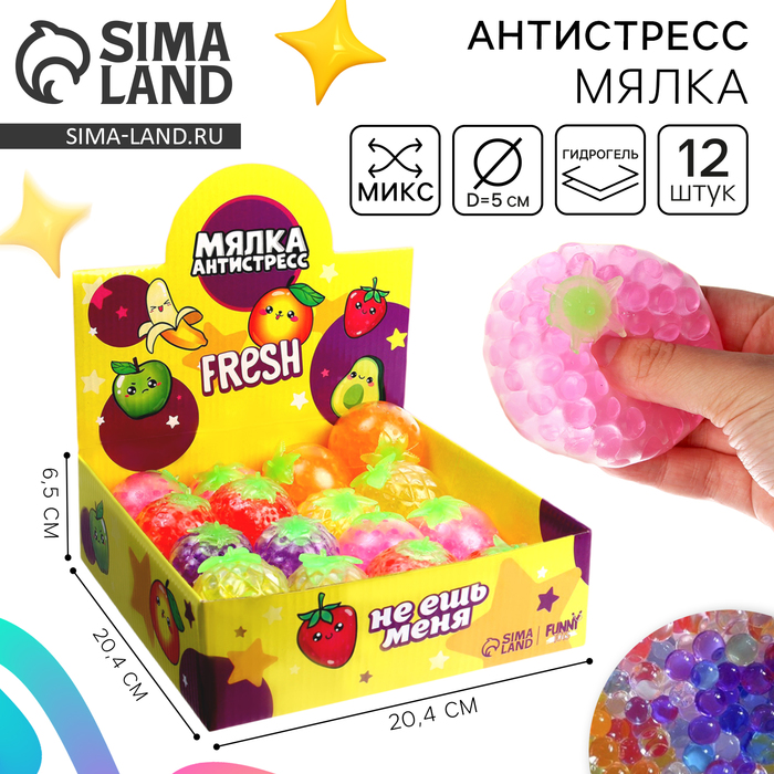 Антистресс сквиш мялка «Фруктики», с гидрогелем, в шоубоксе, МИКС