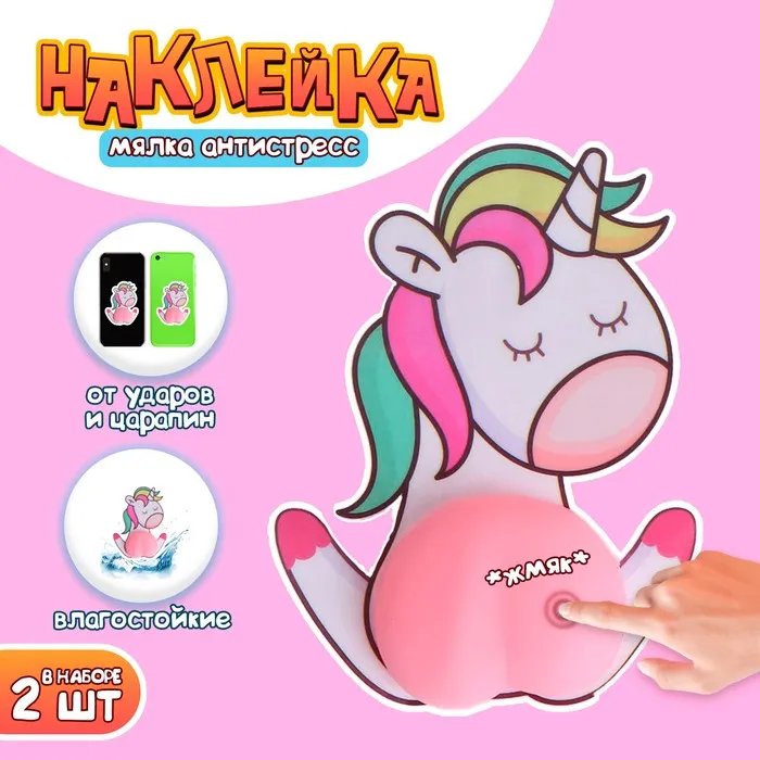 Антистресс игрушка - мялка «Попка. Единорог», в наборе 2 наклейки - мялки