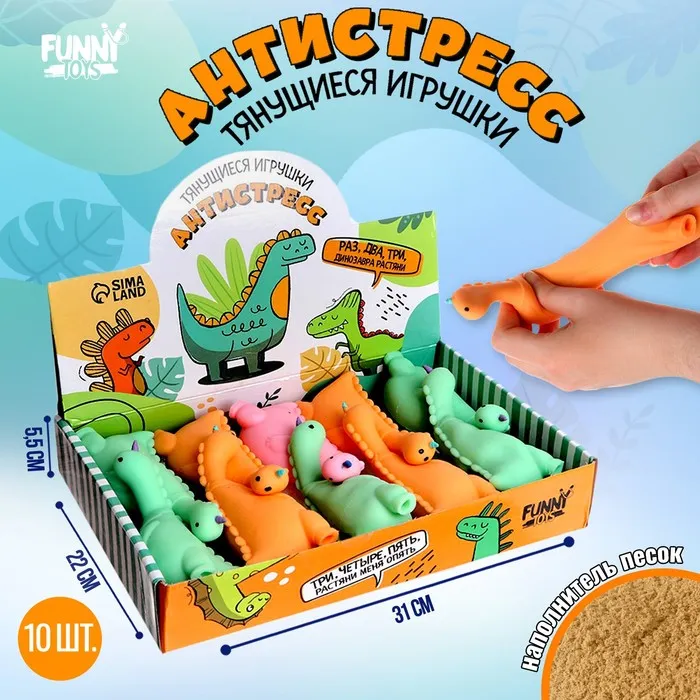 Мялка антистресс тянучка «Динозавр», с песком, в шоубоксе, МИКС