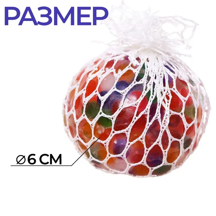 Антистресс игрушка, мялка в сетке, с гидрогелем, 6 см, МИКС