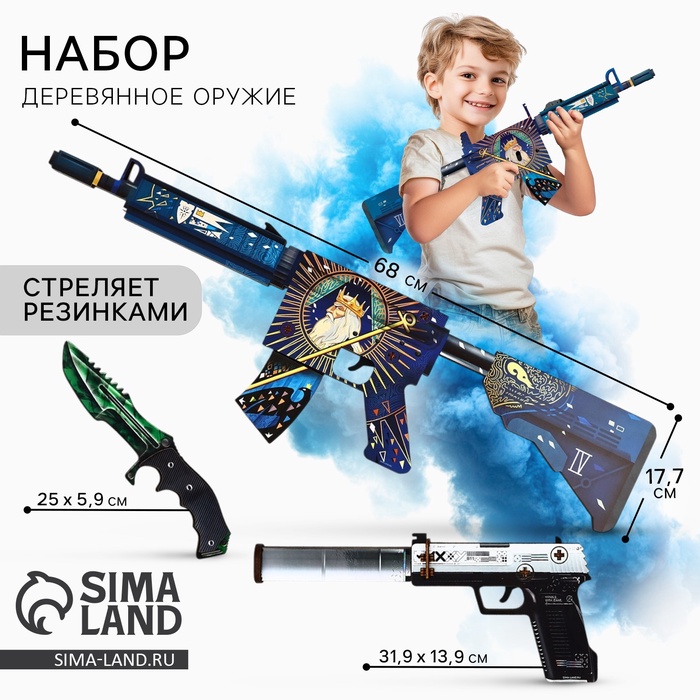 Оружие деревянное, детское сувенирное «Некромантика», автомат, пистолет, нож - штык, 3 шт.