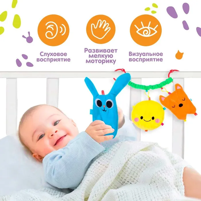 Благодаря продуманному дизайну, они легко крепятся к коляске или кроватке, не занимая много места и не мешая движению. Разнообразие цветов, форм и текстур стимулирует сенсорное восприятие ребенка, способствуя его гармоничному развитию.