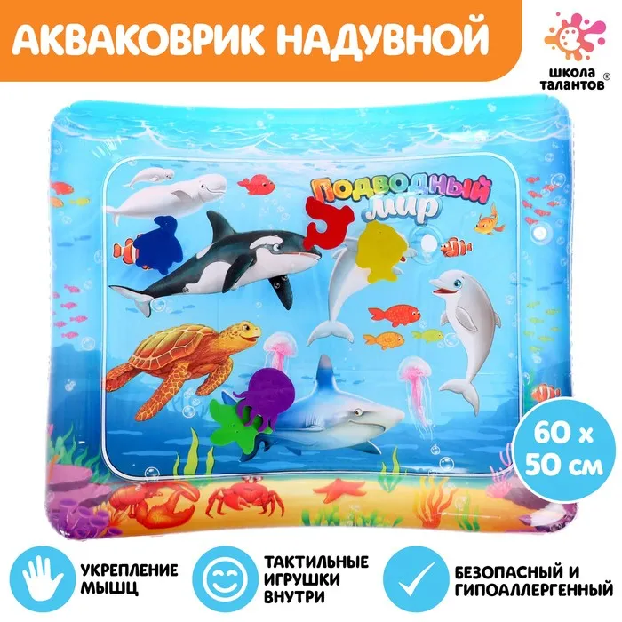Акваковрик Крошка Я «Морское приключение» надувной, развивающий, водный коврик, 65х65 см