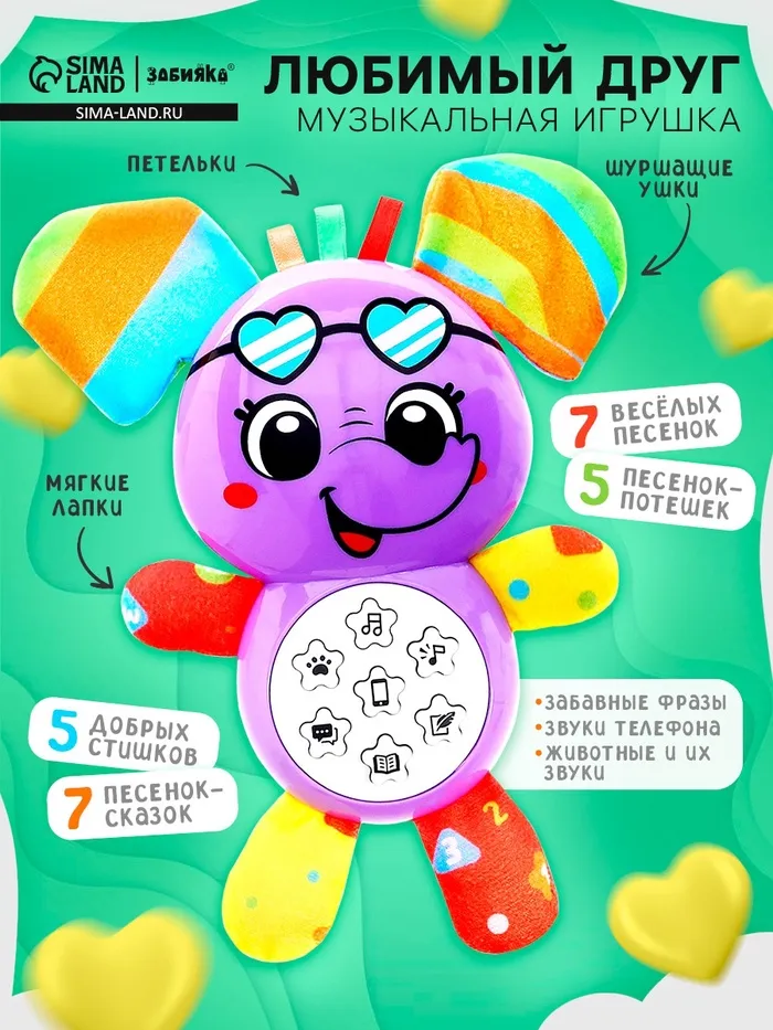 Музыкальная игрушка «Любимый друг. Слоник», песни, стихи, фразы
