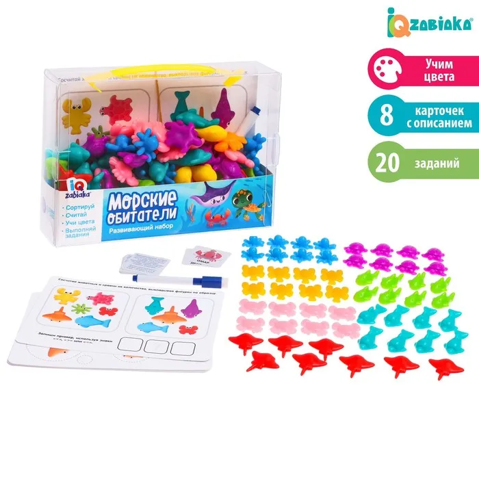 Развивающий набор «Морские обитатели», задания на карточках, маркер
