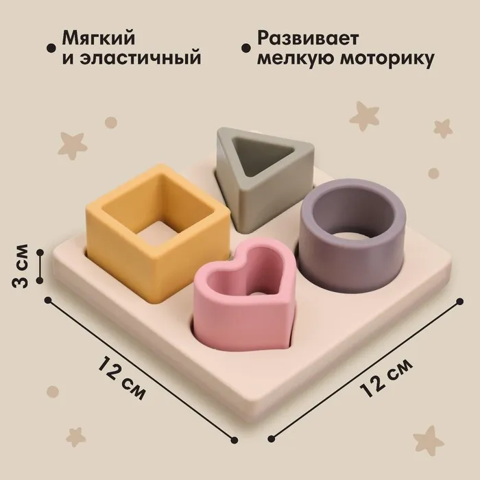 Развивающая игрушка - сортер M&B «Изучаем фигуры», пищевой силикон, бежевый