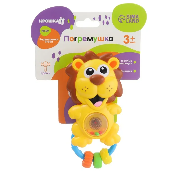 Музыкальная погремушка Крошка Я «Львенок», светится, от 3 мес.