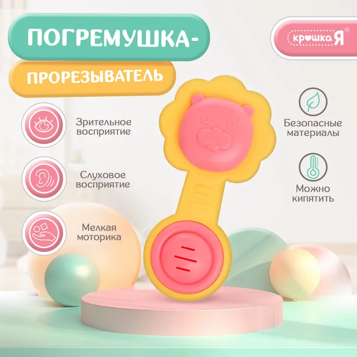 Погремушка-прорезыватель для зубов «Львёнок», пищевой силикон, 13 см