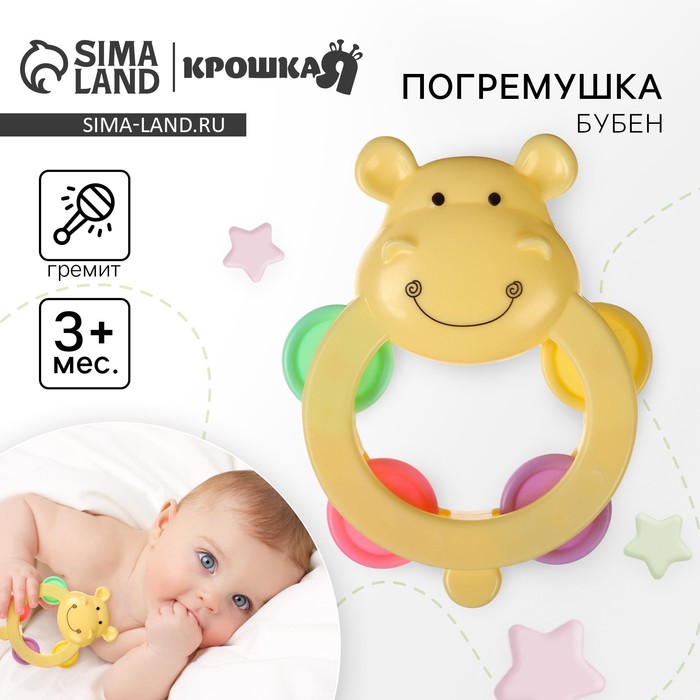 Погремушка - бубен Крошка Я «Бегемотик», от 3 мес.