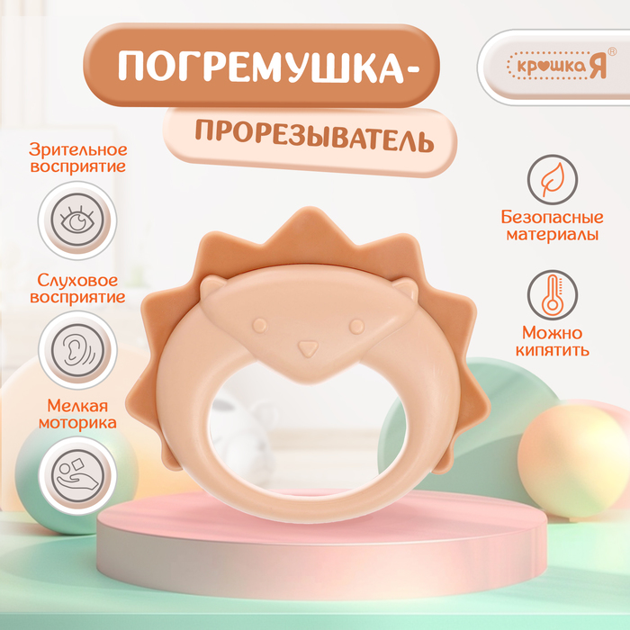 Погремушка «Ёжик», с прорезывателем для зубов, пищевой силикон