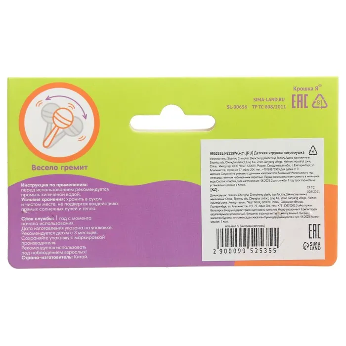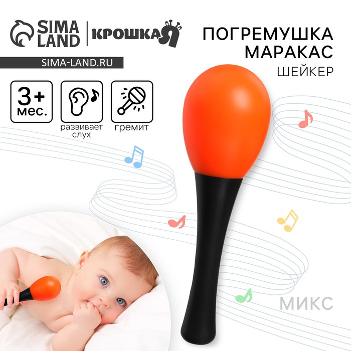 Погремушка Крошка Я «Перкуссионный маракас: черная ручка», шейкер, МИКС