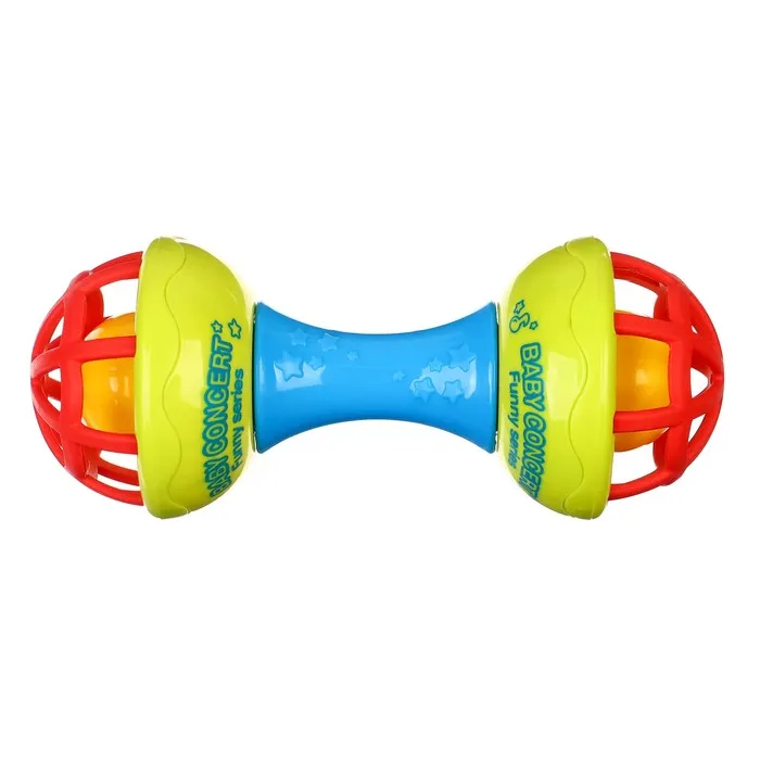 Погремушка с прорезывателем Крошка Я «Гантелька яркая», с эластичными элементами, от 3 мес.