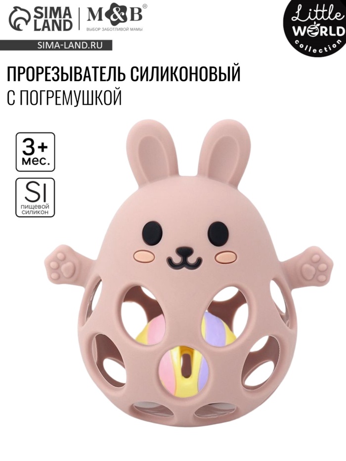 Прорезыватель погремушка «Зайка», силиконовый,12,5 см, розовый