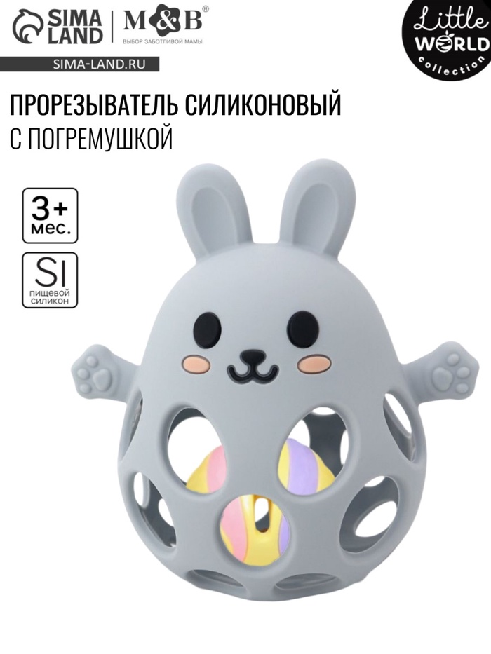 Прорезыватель погремушка «Зайка», силиконовый, 12.5 см, серо-голубой