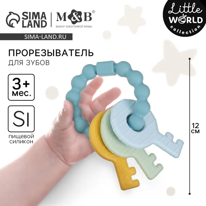 Прорезыватель силиконовый M&B «Ключики», от 3 мес., синий