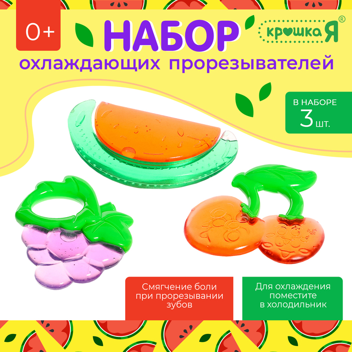 Охлаждающие прорезыватели для зубов, пищевой силикон, в кейсе, набор 3 шт.