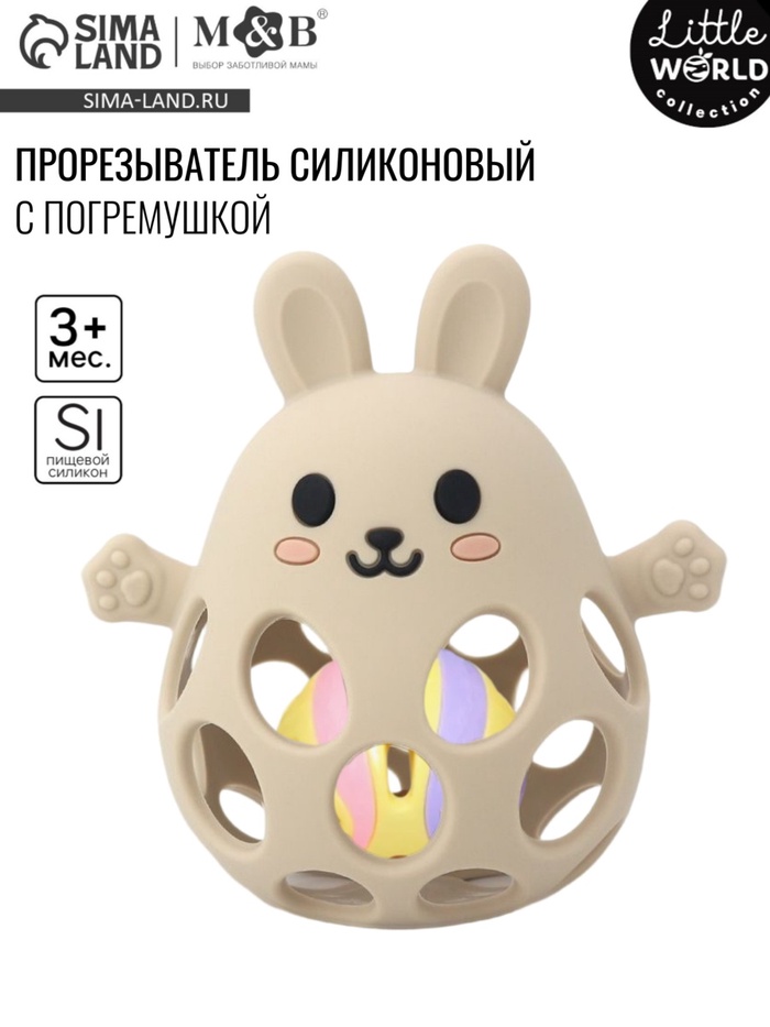 Прорезыватель для зубов с погремушкой 4 в 1 «Зайка», силикон, бежевый
