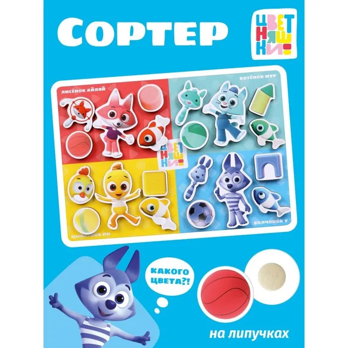 Вкладыши на липучках, цветняшки «Сортируем предметы» 20 элементов, на липучках, изучаем цвет