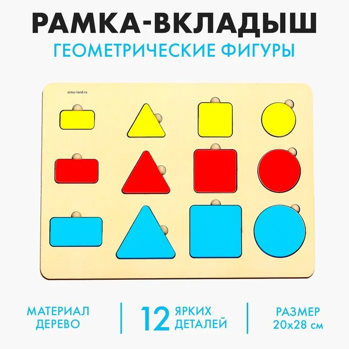 Рамка - вкладыш «Геометрические фигуры», 12 вкладышей