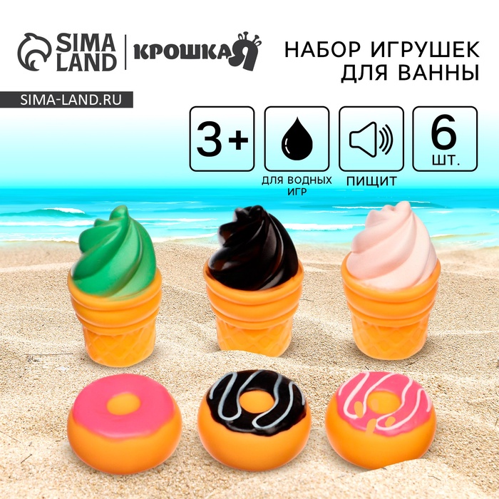 Набор резиновых игрушек для ванны «Сладости», с пищалкой, 6 шт, Крошка Я
